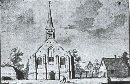 Een prent uit 1611 toont een vervallen kerk. Maar in 1722 zien we een gerestaureerd gebouw, met op de gevel het jaartal 1622. Waarschijnlijk vond toen de restauratie plaats.